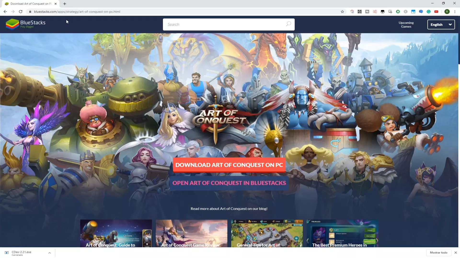 - Now we must click on the button " Download Art of Conquest on PC ". A file BlueStacksInstaller.exe is downloaded.