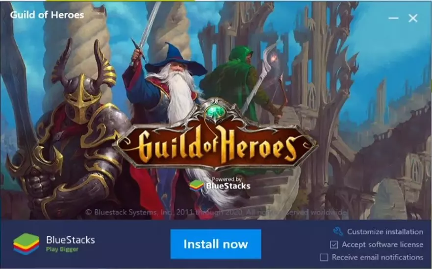 Now we have to click on the option "Download Guild of Heroes on PC". A file BlueStacksInstaller.exe is downloaded.