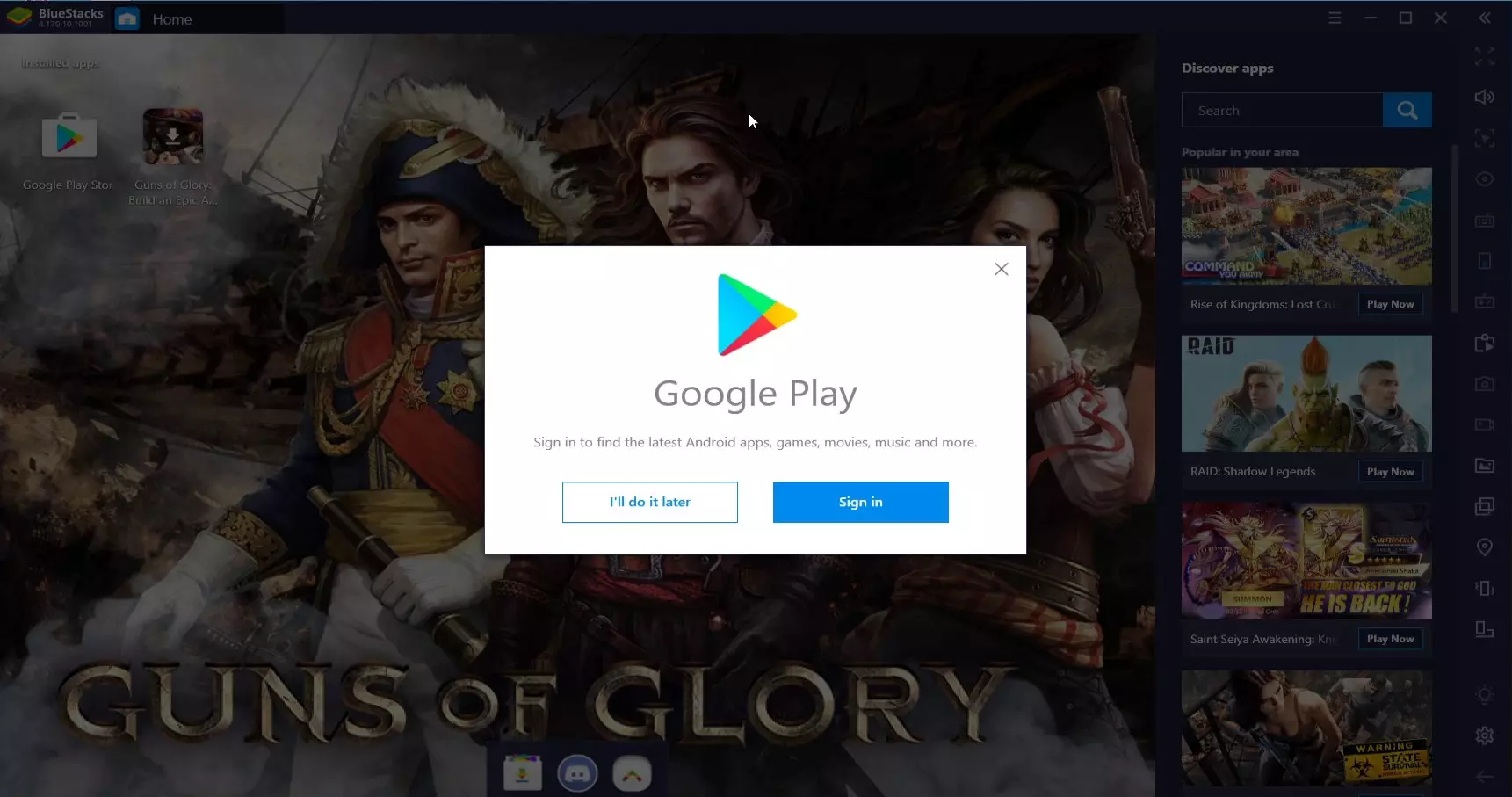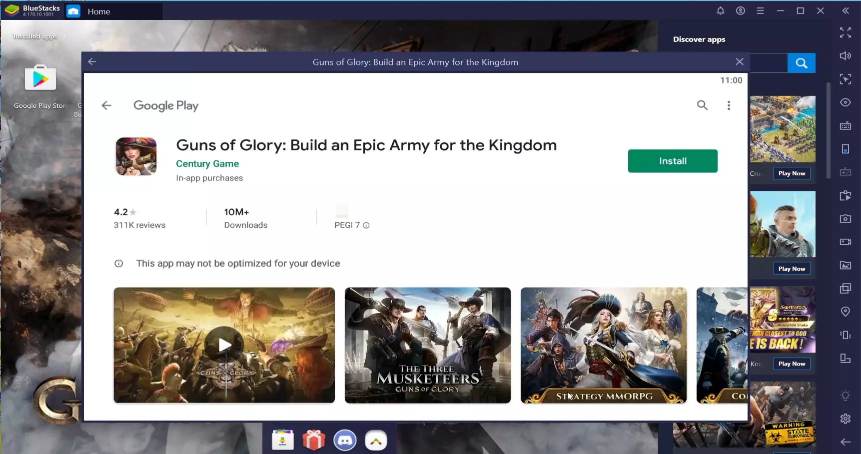 You'll see "Guns of Glory" on the emulator's desktop, just click it to proceed to install. Google Play will pop on the computer screen and will request you to click on the "Install" option. If you have a quick internet connection, then this downloading will be finished soon.