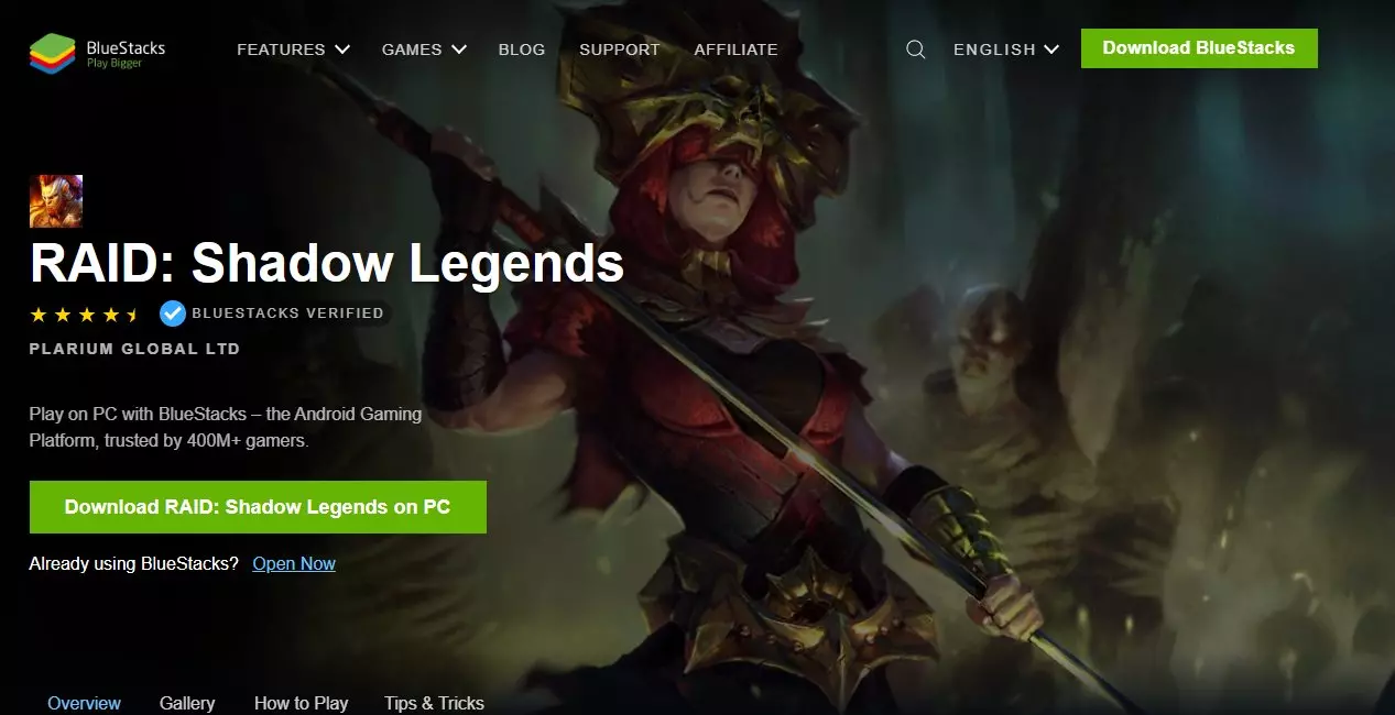 Once you will be right here on the BlueStacks website, you'll find the "Download RAID Shadow Legends on PC" icon. A file BlueStacksInstaller.exe is saved.