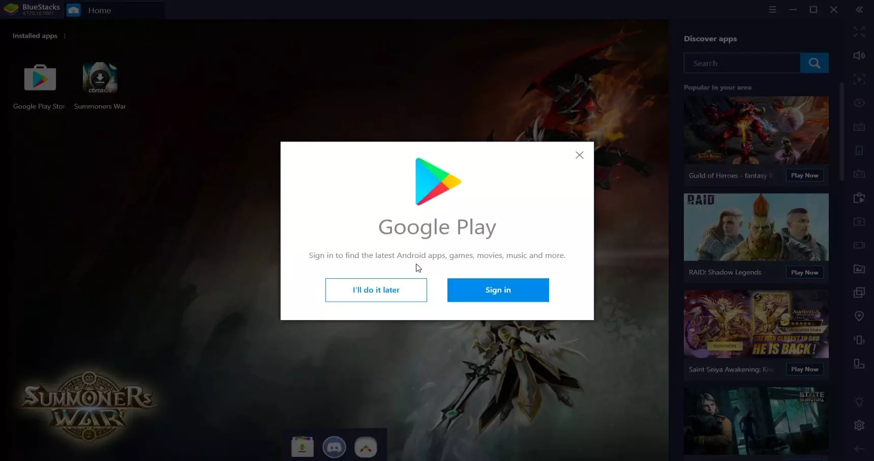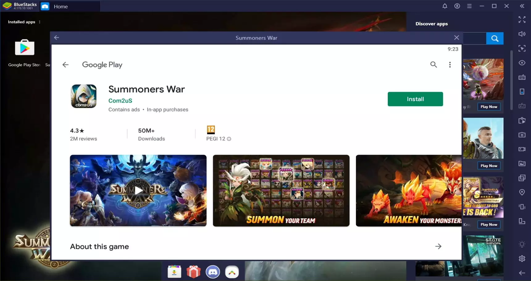 Within the desktop of this emulator, we go to install by simply pressing the icon of the "Summoners War." Google Play may appear on your screen and can request you to click on the "Install" button. In case you have fast internet, then this downloading will be carried out soon.