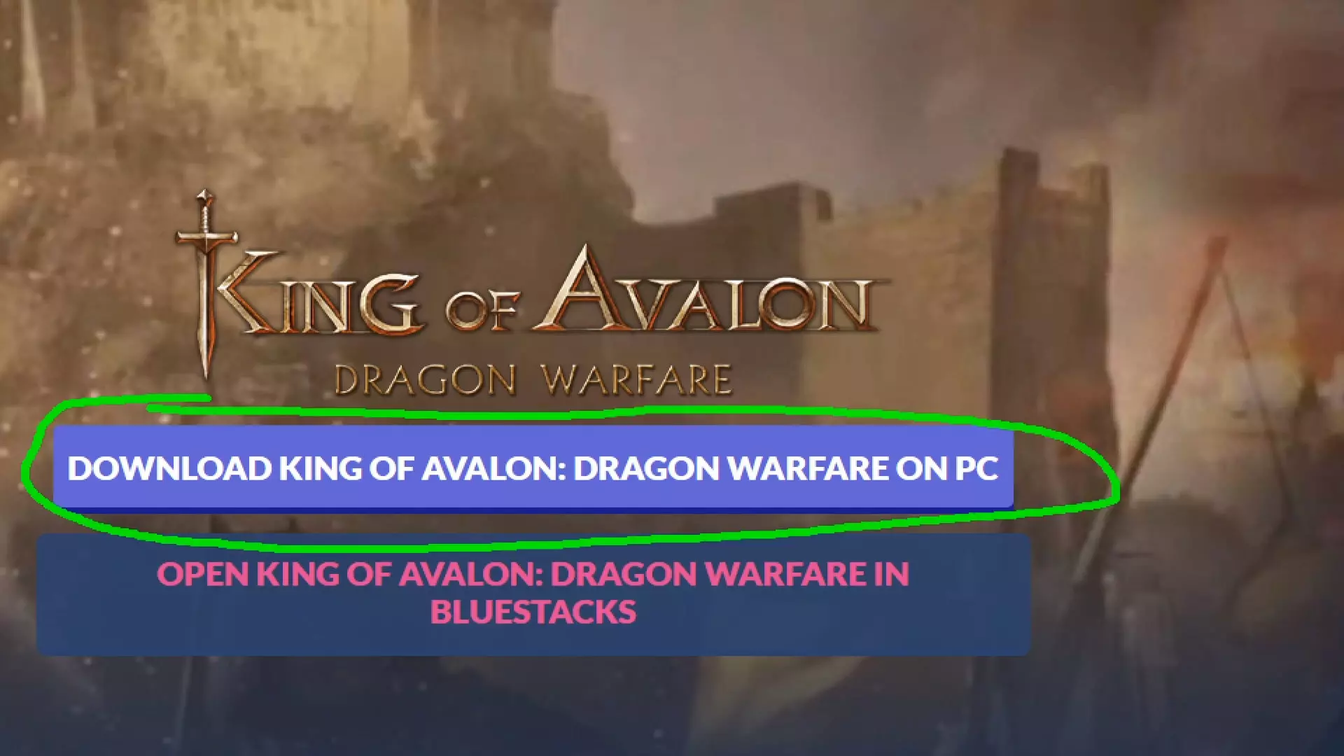 -  Once we are on the website, we are going to click on the big button " Download King of Avalon on PC "