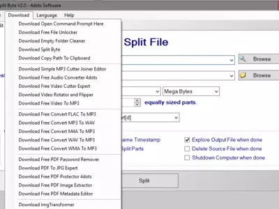 Musst du einem Freund oder Bekannten eine Datei schicken, die zu groß ist, und dein E-Mail-Programm kann die gesamte Datei nicht hochladen? Willst du einen Film auf einen Online-Speicherdienst hochladen, aber er ist zu schwer? Dann brauchst du eine Anwendung wie Split Byte, die entwickelt wurde, um wichtige Dateien aufzuteilen und bei Bedarf ihre Teile zusammenzufügen.