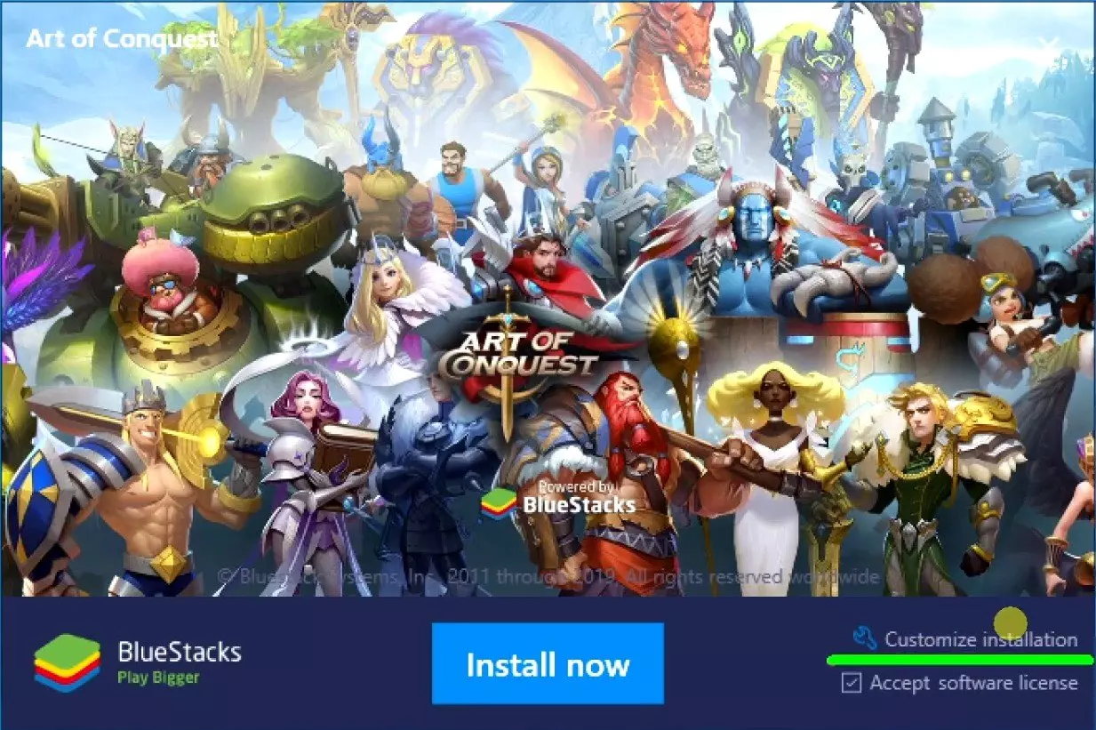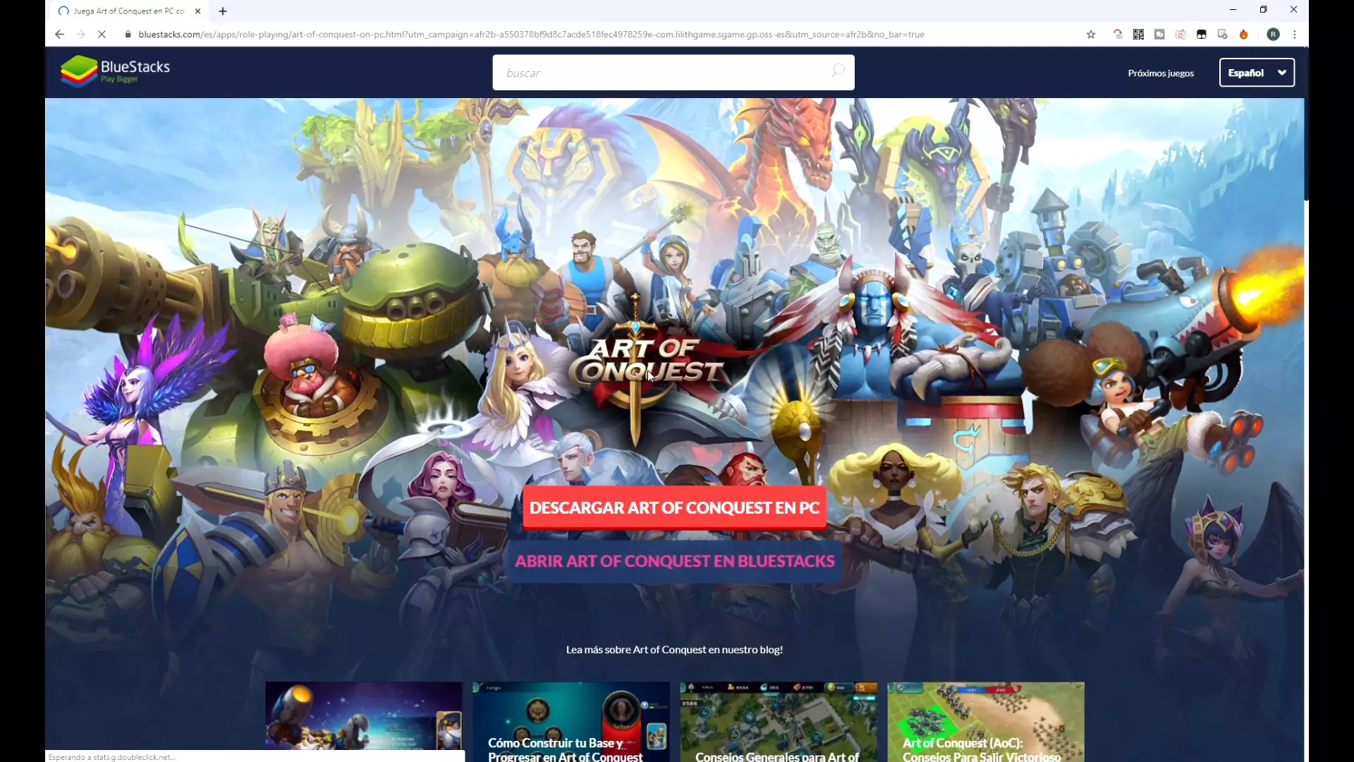 -  Ahora debemos pinchar en el botón de “ Descargar Art of Conquest en PC ”. Se descarga un fichero BlueStacksInstaller.exe.