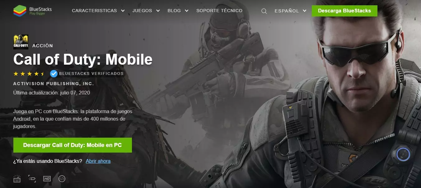 Cuando estés en el sitio de Bluestacks, encontrarás el botón "Descargar Call of Duty Mobile en el PC". Un archivo BlueStacksInstaller.exe es descargado.