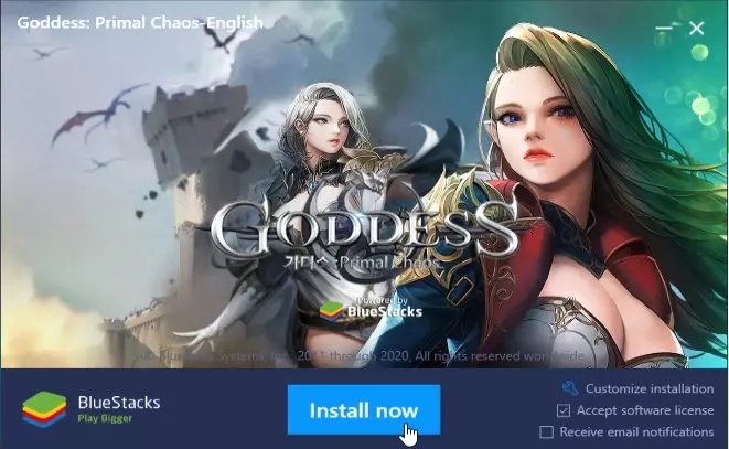 Ahora debemos seleccionar el botón "Descargar Goddess Primal Chaos en PC". El archivo BlueStacksInstaller.exe es el archivo que se guarda.