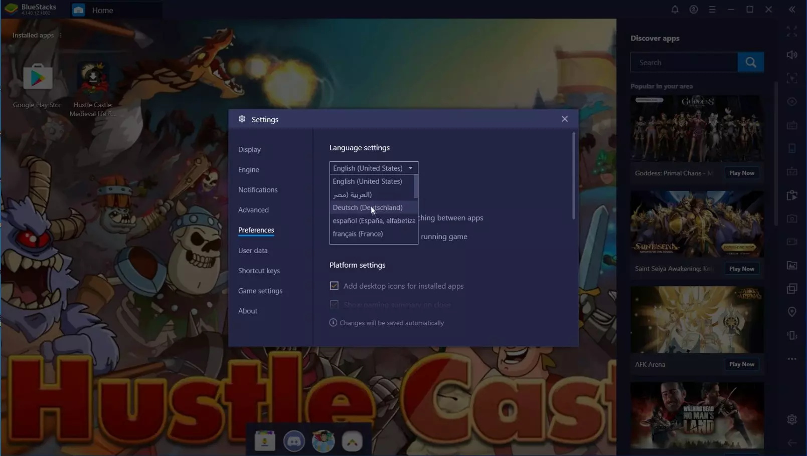 También hay ajustes para cambiar el lenguaje del juego en esta rueda dentada en particular. Elige el idioma específico en el menú desplegable de "Configuración de idioma" y selecciónalo finalmente. WOW, es super fácil!