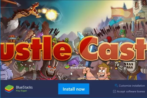 Esta es la opción de "Descargar Hustle Castle Fantasy Kingdom en PC", haz clic en ella. Se descarga un archivo BlueStacksInstaller.exe.