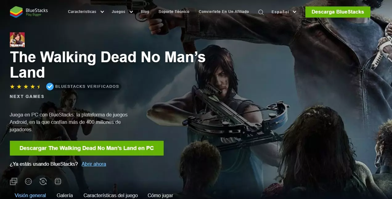 Cuando estés en la web de Bluestacks, encontrarás el icono de " Descargar The Walking Dead No Mans Land en PC". El archivo descargado es el BlueStacksInstaller.exe.