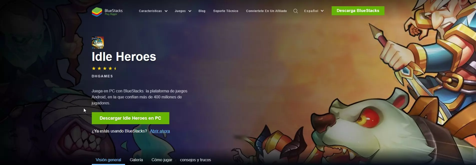 Idle Heroes es un videojuego de dispositivos Android que se puede jugar de forma muy sencilla en PC gracias a el emulador de Android BlueStacks. Un emulador de Android es un software que permite ejecutar aplicaciones y juegos Android en PCs Windows. Gracias a esto, podremos disfrutar de este gran juego en pantalla grande, y haciendo uso del teclado y ratón.
