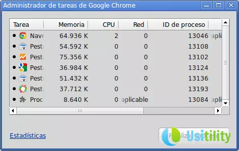 Si accedemos de nuevo al Administrador de Tareas de Chrome, veremos que ya no existe la pestaña que estaba consumiendo los recursos del PC.