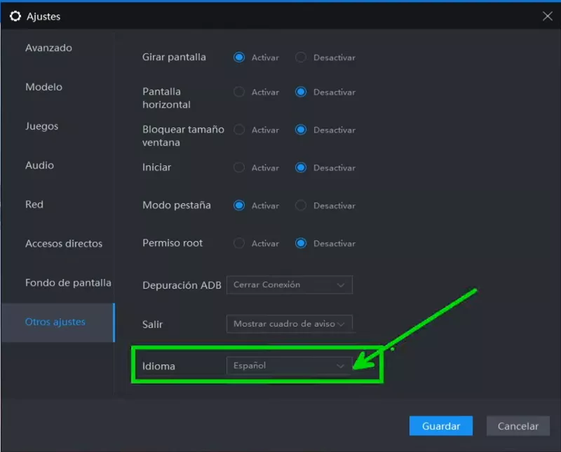 Cómo cambiar el idioma del emulador y los juegos y aplicaciones