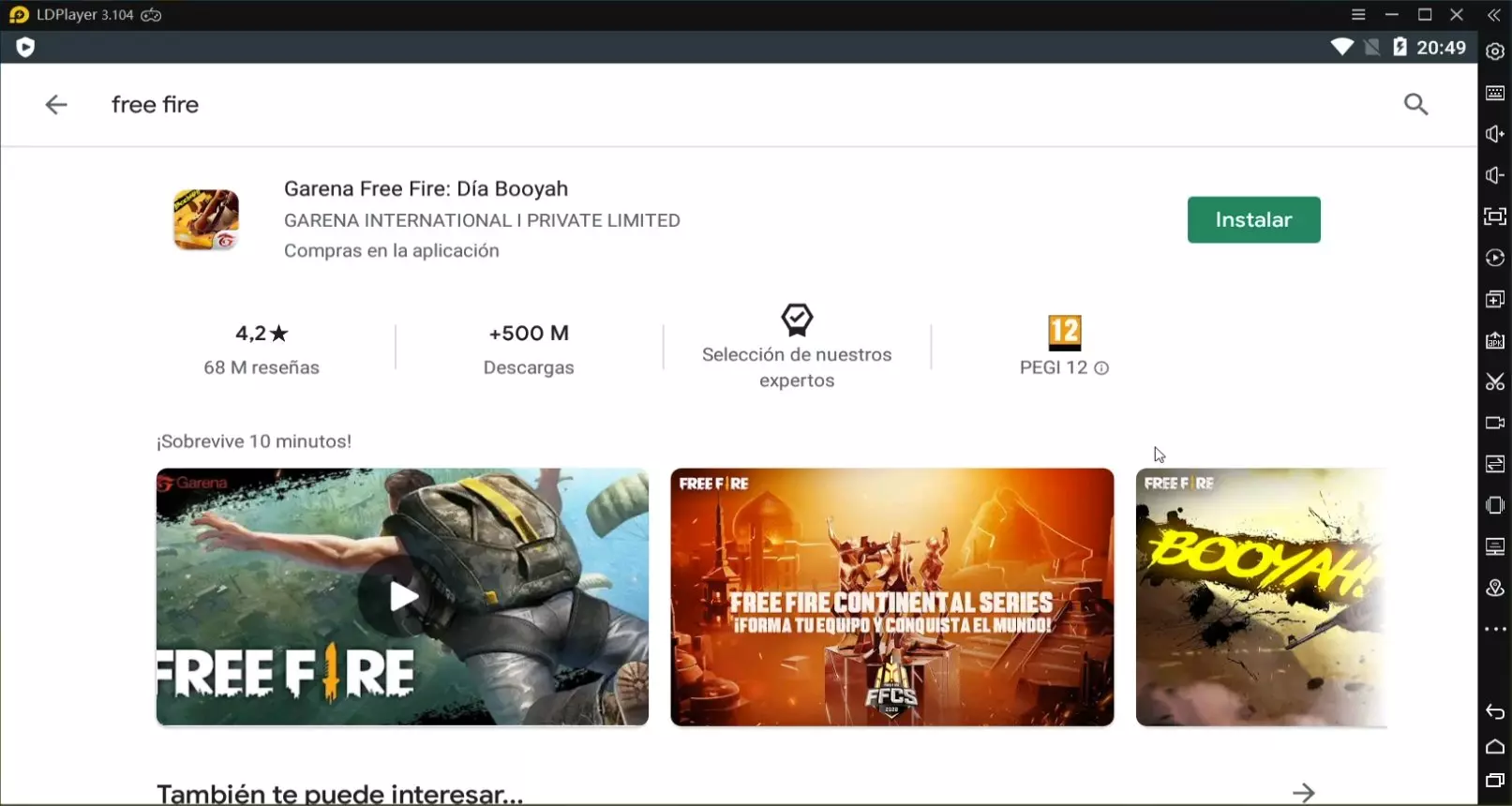 - En el escritorio del emulador, vais a ver el icono de Free Fire además del botón Instalar juego. Pulsen el botón Instalar juego para ir a la Play Store, y desde allí, descargar y configurar el juego.