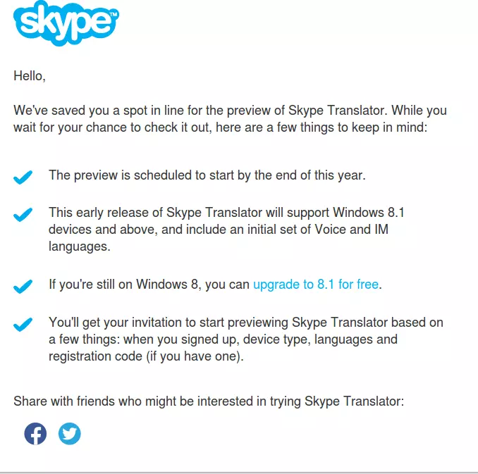 De momento esta función únicamente está disponible para las versiones de Skype de Windows 8.1 y Windows 10 Technical Preview. Además por el momento únicamente soporta la traducción simultánea de los idiomas Inglés y Español.