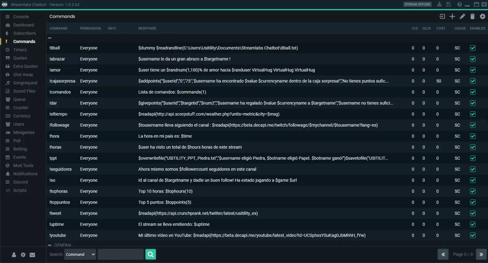 TutorialesEn este tutorial vamos a ver una lista de comandos que nos serán muy útiles para nuestro chatbot de Streamlabs. Partimos de la base de que ya sabéis utilizar el Streamlabs Chatbot y configurarlo de forma adecuada. Si no es así, al final de artículo encontraréis una lista de reproducción de YouTube donde podéis aprender a configurar y utilizar este magnífico bot para Twitch y YouTube.
