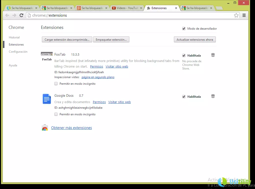 Ouvrez Chrome et allez sur « Herramientas→Extensiones ».