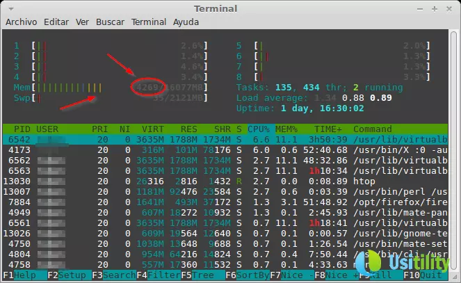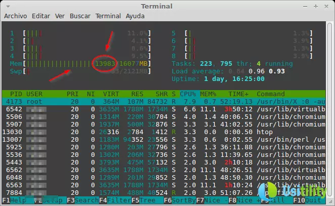 L'image suivante montre comment l'ordinateur consomme pratiquement 14 Go de mémoire (en additionnant tous les processus)