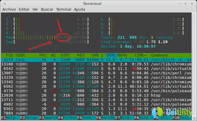 Cette autre image montre la mémoire occupée après la fermeture du navigateur Chromium. Il utilise en ce moment un peu plus de 4 Go, donc le navigateur utilisait presque 10 Go de mémoire.