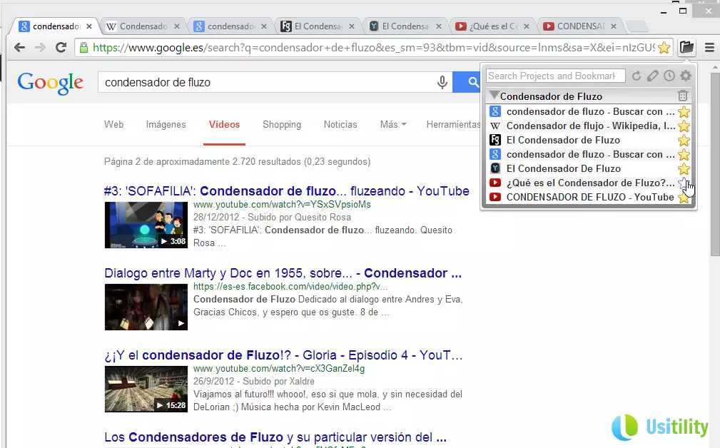 Les projets sont enregistrés dans une liste accessible depuis l'icône principale de l'extension. En cliquant sur l'un des projets, une nouvelle fenêtre de navigateur s'ouvre, contenant tous les onglets qui ont été enregistrés dans ce Projet. Nous éviterons ainsi d'avoir la fenêtre ouverte et donc de consommer inutilement la mémoire du PC.