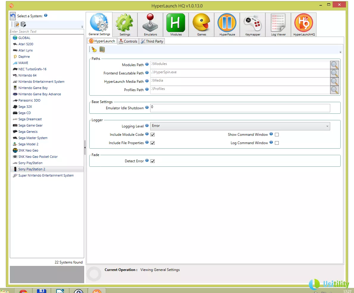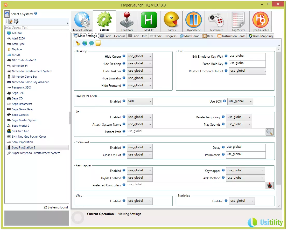 Nous allons maintenant lancer le programme HyperLaunchHQ (c:HyperSpin\HyperLaunchHQ.exe) et associer le système PlayStation 2 à l'émulateur PCSX2.