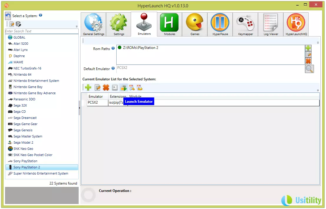 Pour vérifier que tout s'est bien passé, sélectionnez l'émulateur PCSX2 de la liste et cliquez sur le bouton « Launch Emulator » représenté par le symbole « Play ».