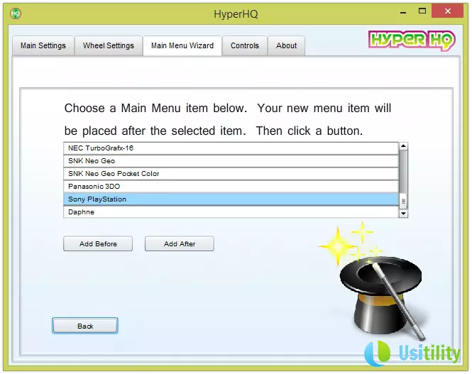 Nous allons maintenant ajouter la plateforme PlayStation 2 au menu principal de HyperSpin, pour cela, nous cliquons sur « Main Menu Wizard » puis sur l'option « Add new item to the Main Menu ».