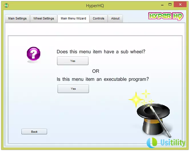 À l'écran suivant, on clique sur le premier bouton « Oui », celui qui se trouve sous le texte « Does this menu item have a sub wheel ? ».