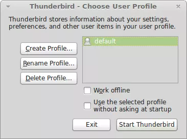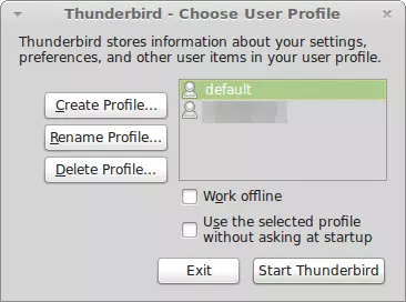 Pour accéder à l'un des profils, vous devez double-cliquer sur le nom, ou sélectionner un profil et appuyer sur Start Thunderbird.