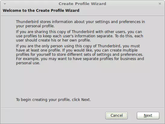 Maintenant, créons le profil pour les comptes de courriel de travail en cliquant sur le bouton Créer profil. L'assistant Create Profile apparaît. Un écran explicatif sur les Profils apparaît, cliquez sur le bouton Suivant.