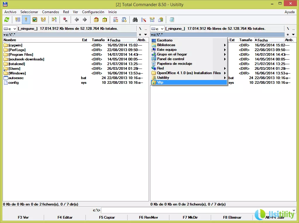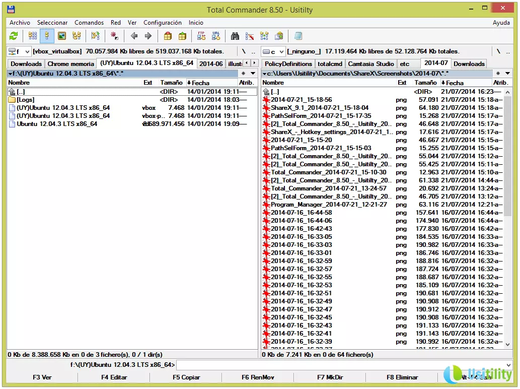 Ces panneaux vous permettront de naviguer dans les différents répertoires et dossiers de l'unité sélectionnée. Vous pourrez utiliser la souris pour naviguer, en faisant un double-clic dans les répertoires, ou bien utiliser les touches de direction et la touche Intro pour vous déplacer dans les répertoires.