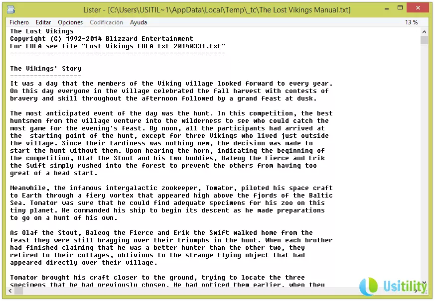 Placez le curseur sur le fichier The Lost Vikings Manual.txt, et appuyez sur la touche F3. Vous pourrez ainsi voir le fichier The Lost Vikings Manual.txt ouvert et son contenu affiché.