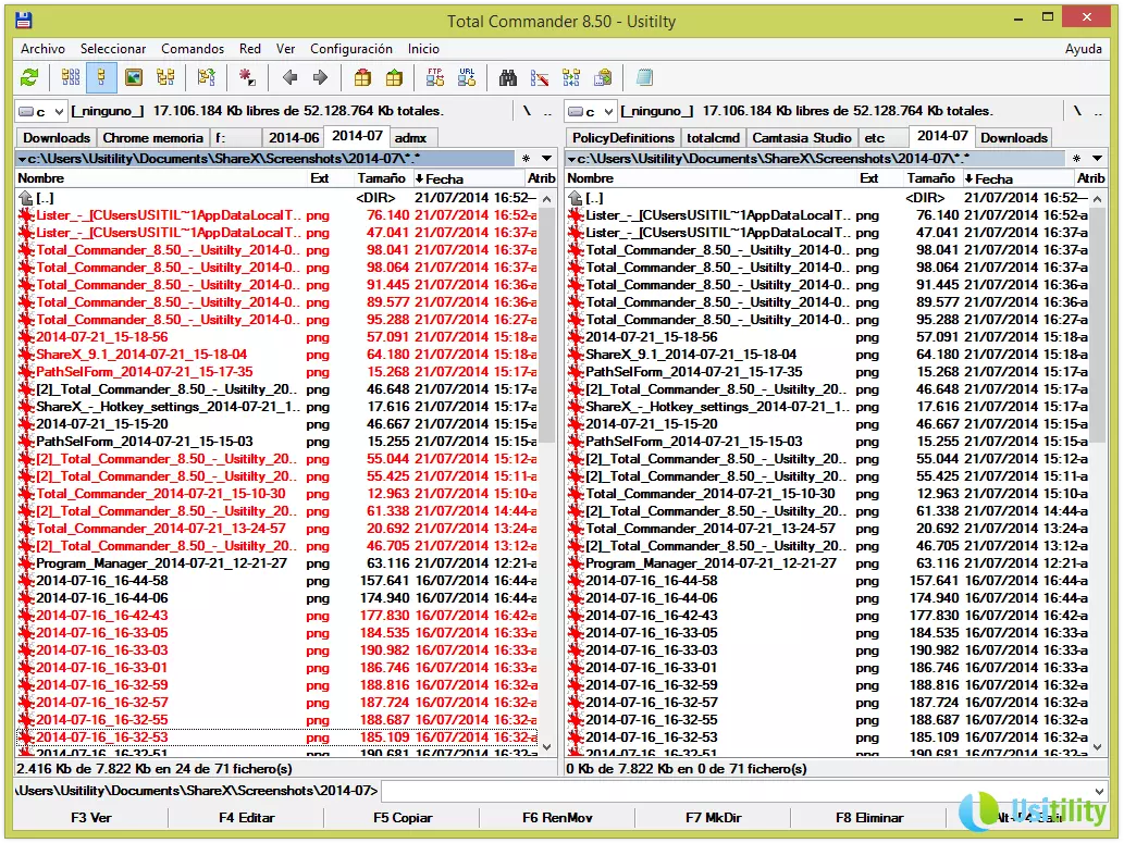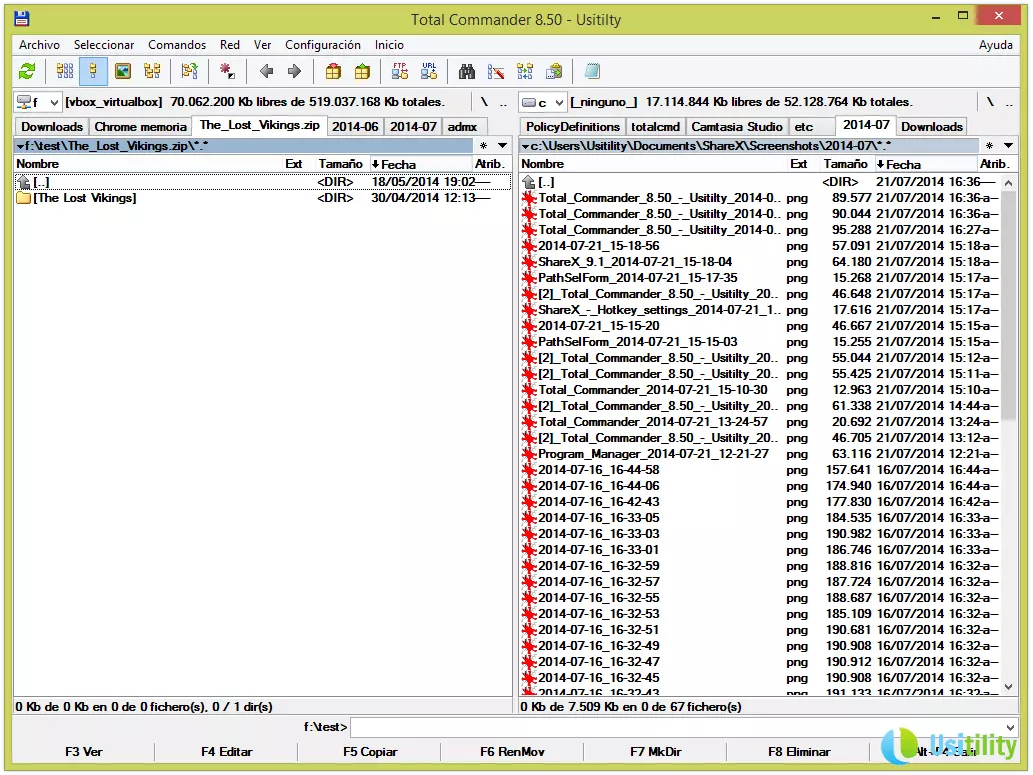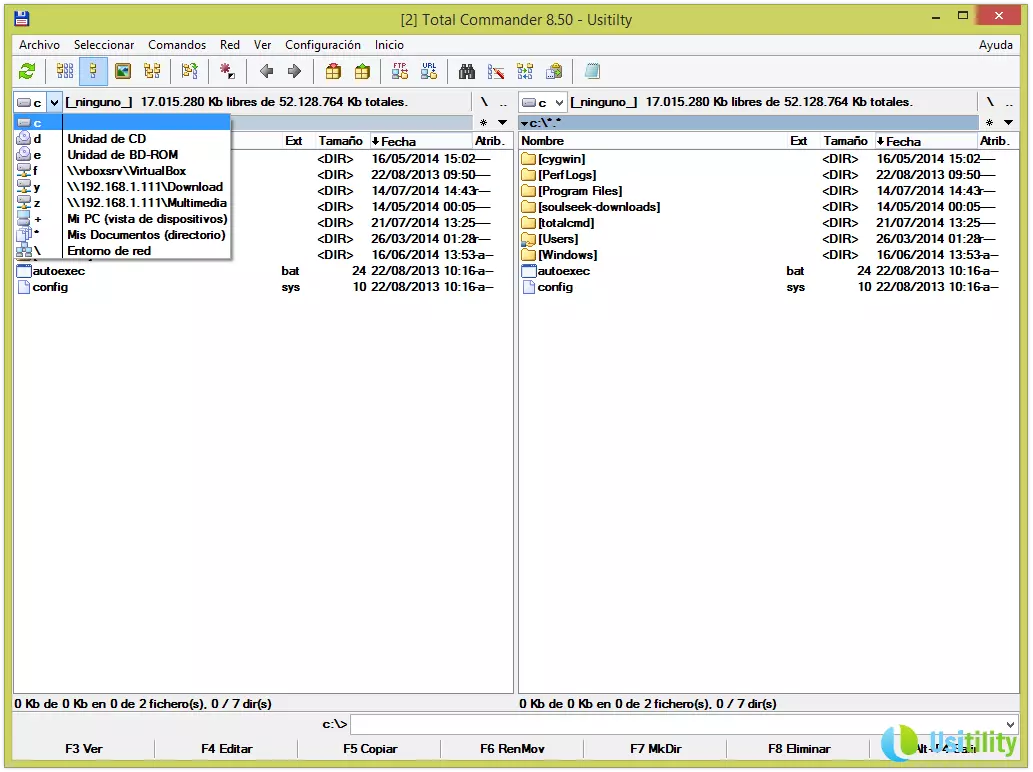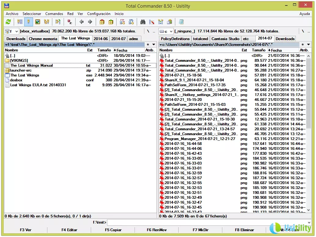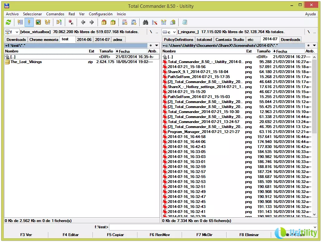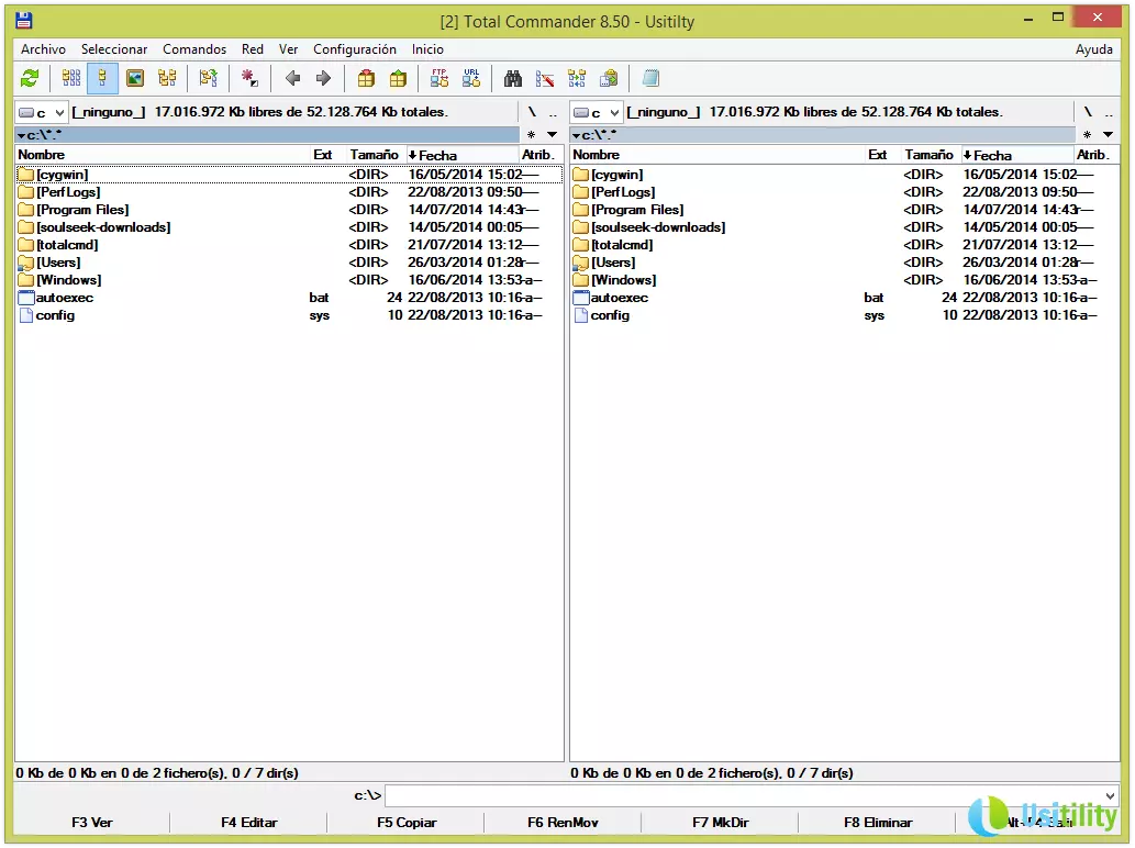 Ces panneaux vous permettront de naviguer dans les différents répertoires et dossiers de l'unité sélectionnée. Vous pourrez utiliser la souris pour naviguer, en faisant un double-clic dans les répertoires, ou bien utiliser les touches de direction et la touche Intro pour vous déplacer dans les répertoires.