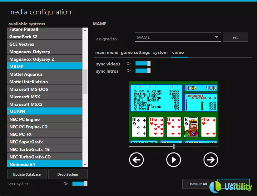 On the main screen, we click on "home" and press the icon of the arcade machine. A new screen called "media configuration" opens.