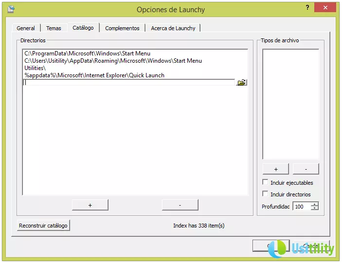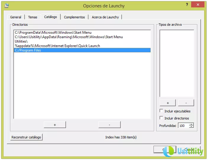 This can easily be changed, so we need only to press the gear icon in the upper right, and click on the tab “Catalogue”. Click on “+” button and select the directory we want to include, for example, “C:\Program Files”.